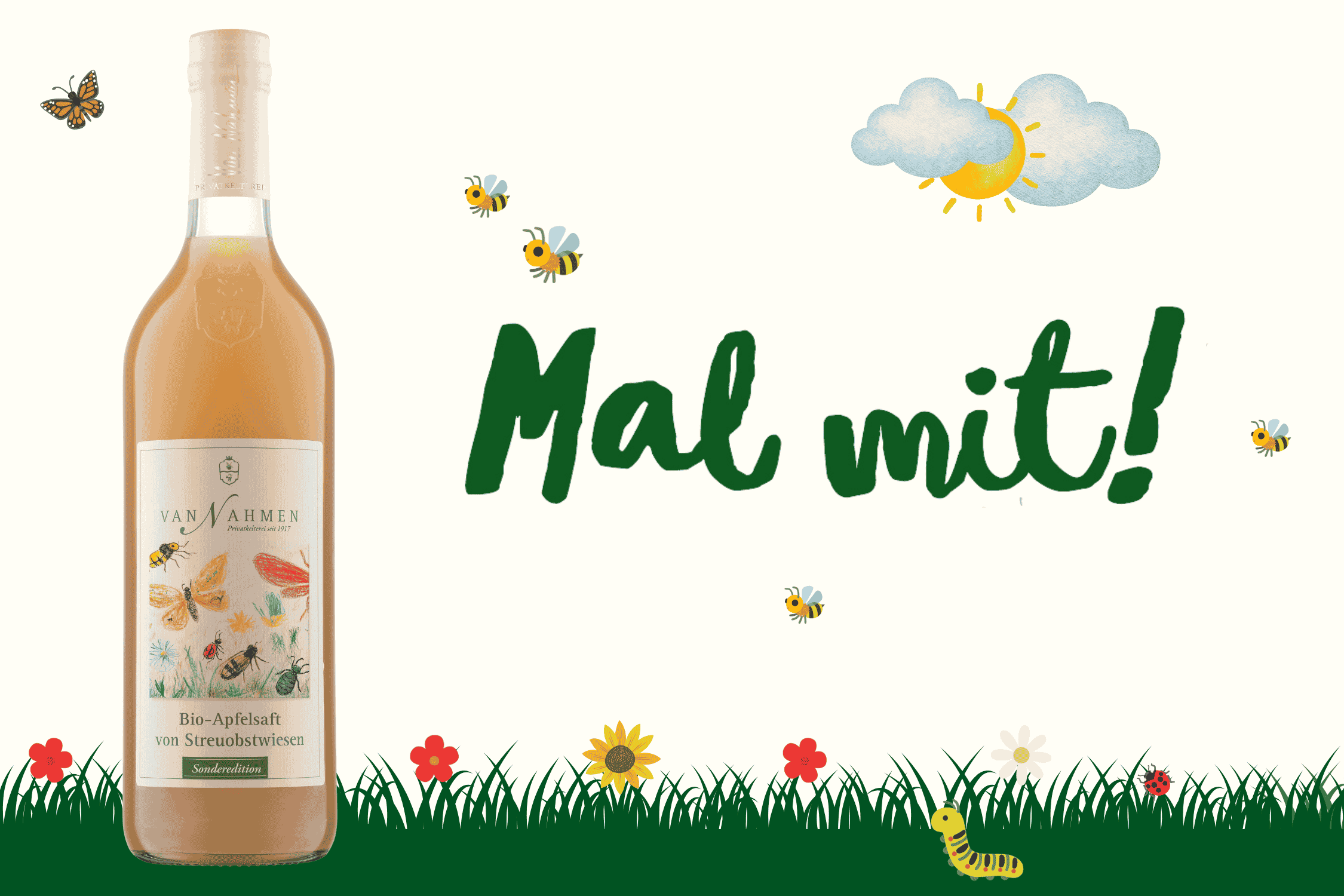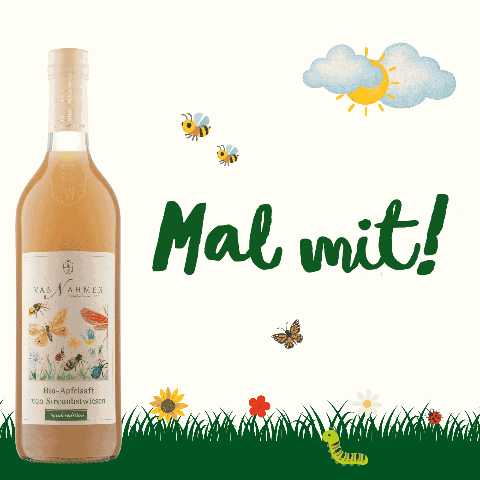 Auch im Jahr 2026 schreiben wir, die Privatkelterei van Nahmen wieder unseren beliebten Malwettbewerb aus – diesmal unter dem Motto „Alles blüht und summt auf meiner Streuobstwiese“. Ziel des Wettbewerbs ist es, die beeindruckende Pflanzen-, Blumen- und Insektenvielfalt auf heimischen Streuobstwiesen in den Fokus zu rücken und Kinder zu inspirieren, die Farben- und Artenpracht der Natur – von summenden Bienen über bunte Schmetterlinge bis hin zu leuchtenden Blüten – kreativ festzuhalten.
