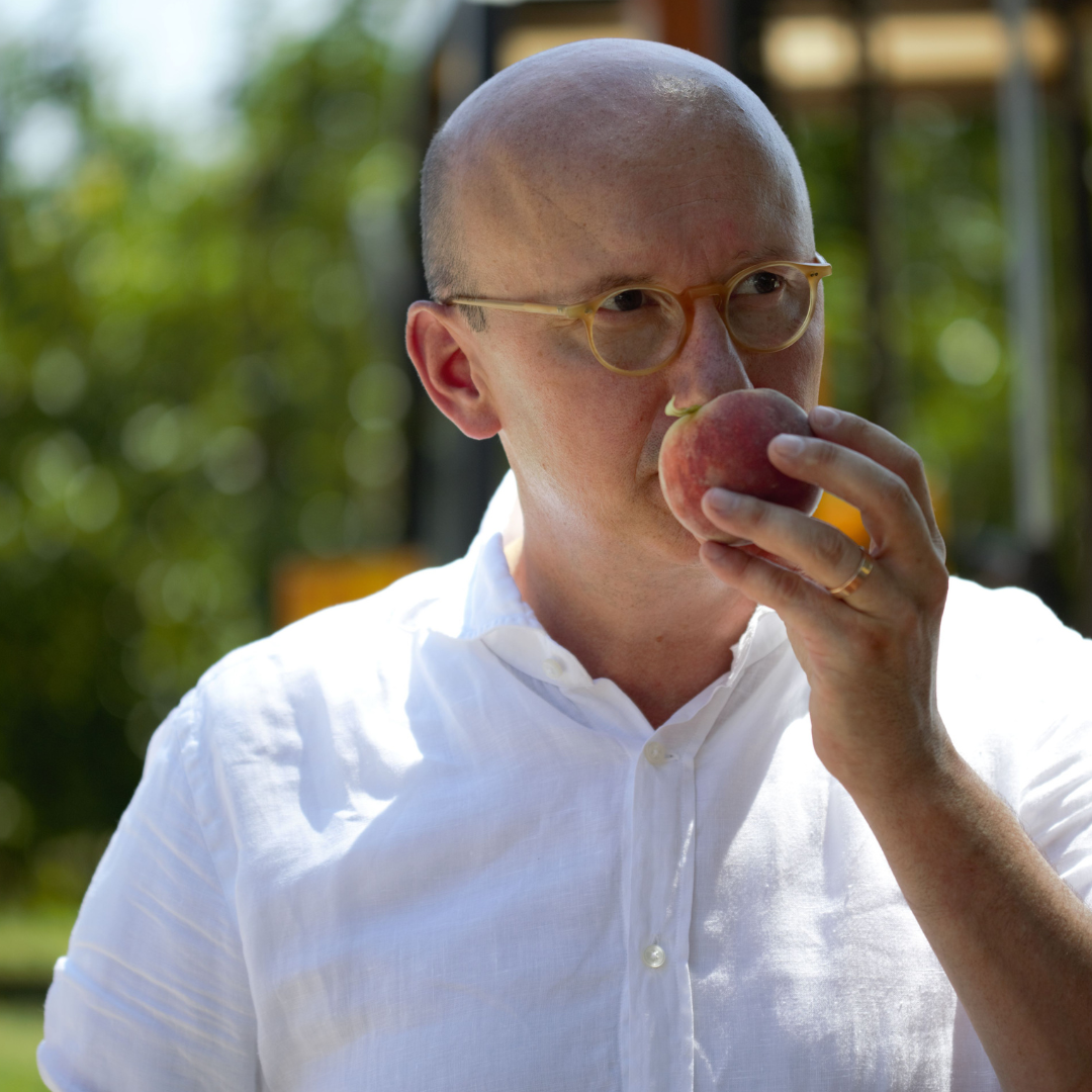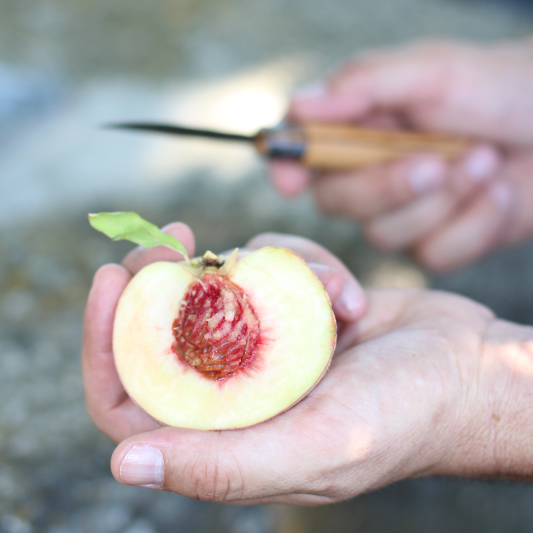Paolo lebt für seine Weißen Pfirsiche. Mit Herz und Verstand kümmert er sich liebevoll um sie. Die prachtvollen Früchte seien sehr sensibel, erklärt er uns, man müsse sie wie mit Samthandschuhen behandeln, sonst bekämen sie Druckstellen. Daher pflückt er die reifen Pfirsiche vorsichtig mit der Hand und sammelt sie in einem kleinen Eimer, bevor Eimer für Eimer in eine kleine Obststiege wandern. Die alte norditalienische Sorte des Weißfleischigen Pfirsichs überzeugt durch ihren aromatischen Geschmack. Das Fruchtfleisch weist eine so zarte Konsistenz auf, dass es regelrecht auf der Zunge zergeht. Vorsicht Suchtgefahr, denn das Fruchtfleisch ist zudem saftig, aromatisch und süß. Damit jeder Pfirsich sein volles Aroma entfalten kann, erfolgt diese aufwändige Ernte in mehreren Durchgängen. Mindestens fünf Mal gehen Paolo und seine Männer durch die Reihen, um nur die reifen Früchte mit der Hand zu pflücken. Und das zahlt sich aus, denn nur so erhält unser Weißer Pfirsich Nektar seinen unverwechselbar aromatischen Geschmack.