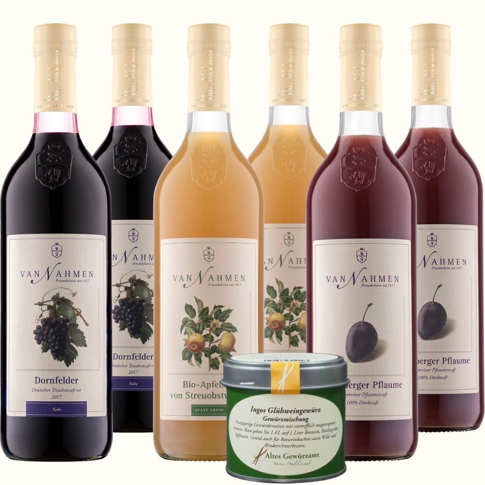 - Der Dornfelder Traubensaft, der für einen außergewöhnlichen Punsch-Genuss mit einer harmonischen Fruchtigkeit, einer angenehmen Süße und lebendiger Frische sorgt. In Kombination mit Ingos Glühweingewürz entsteht ein köstlicher, alkoholfreier Punsch, der an einen guten Glühwein erinnert.