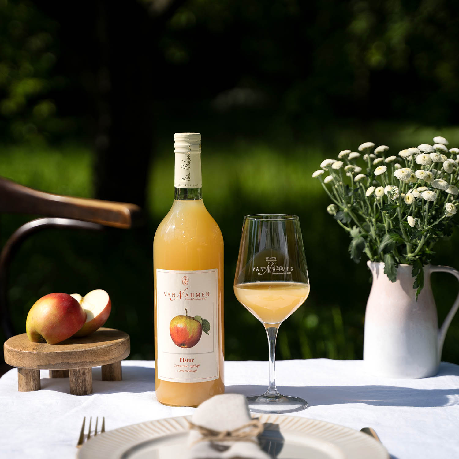 Unsere van Nahmen Direktsäfte und Fruchtnektare lassen sich hervorragend aus Weingläsern genießen. Zum einen verleihen Weingläser aufgrund ihres Aussehens dem Trinken von Saft eine ganz besondere Ästhetik. Zum anderen entfalten sich aufgrund der oftmals größeren, kelchförmigen Öffnung die Aromen des Saftes besser. Somit kann ähnlich wie bei Wein, das Geschmackserlebnis intensiviert werden. Gerade bei Apfelsäften ist es somit möglich, die Unterschiede der verschiedenen Apfelsorten hervorragend herauszuschmecken.