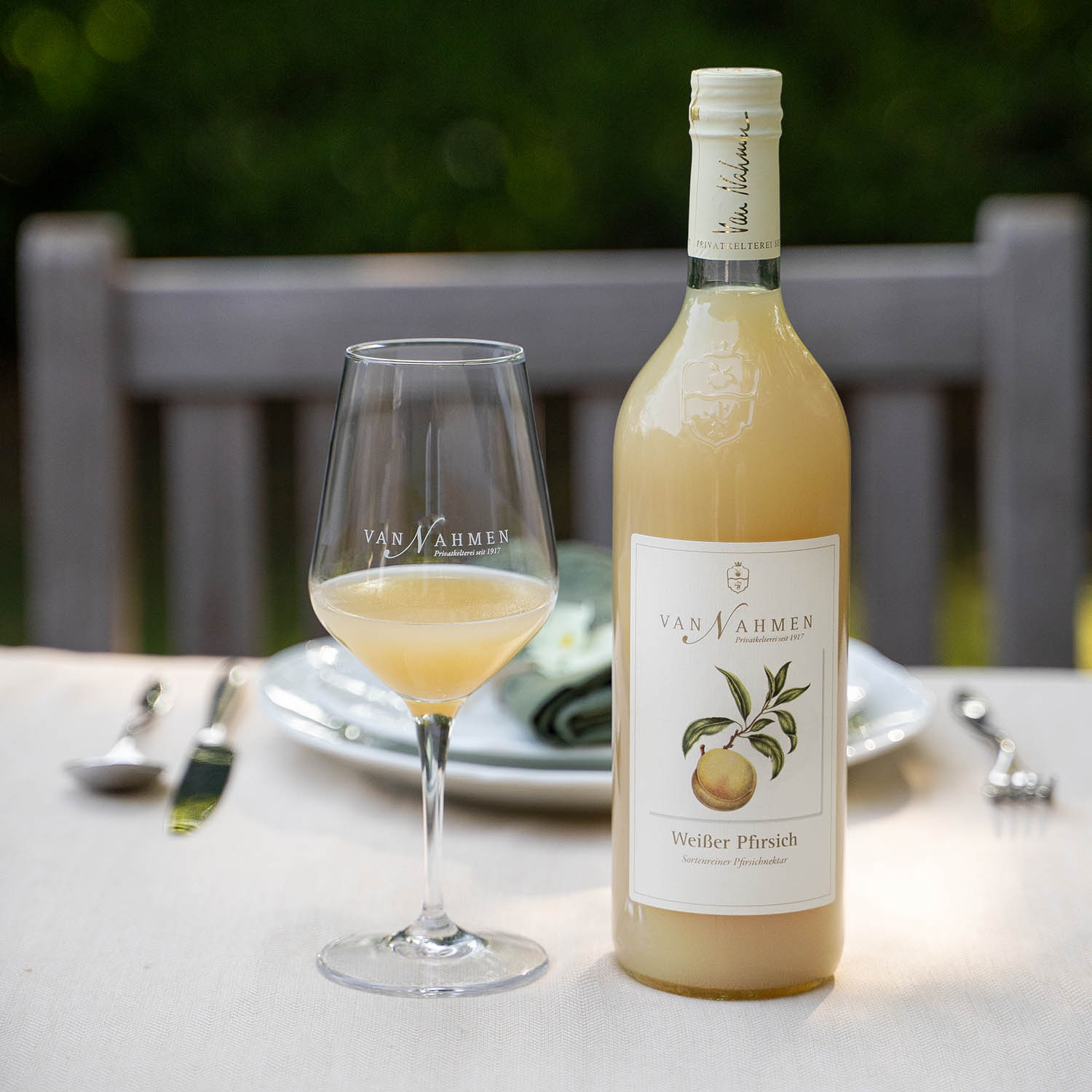 Fruchtnektar aus handgepflückten weißen Pfirsichen