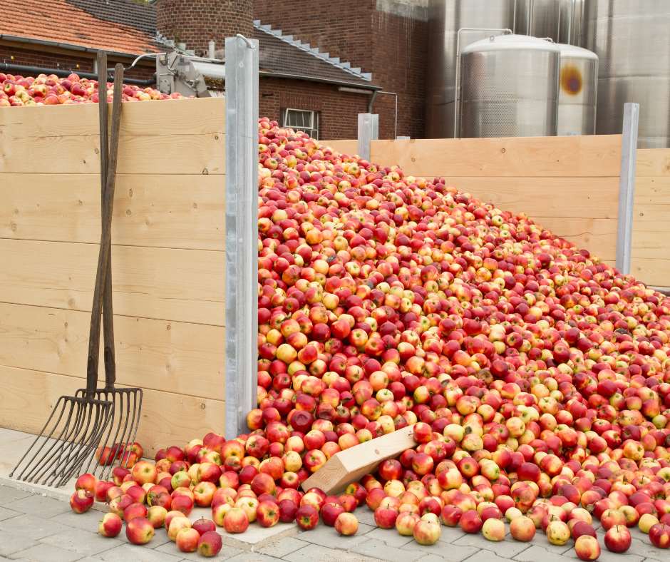 Die erste Qualitätskontrolle findet bereits bei der Apfelannahme statt. Es wird Wert auf sauberes, erntefrisches und reifes Obst gelegt. In verschiedenen Apfelsilos werden die angelieferten Äpfel gesammelt und über einen Schwemmkanal zur Waschstation transportiert. Dieser Wasserkreislauf verspricht eine effektive Wassernutzung, da es erst zum Waschen und anschließend zum Transport der Äpfel verwendet wird. Nach dem Reinigen werden faule und unreife Äpfel auf einem Sortierband von Hand aussortiert. Die ausgewählten Äpfel gelangen über eine Apfelrutsche in die sogenannte Rätzmühle, wo sie zu Maische zerkleinert werden. Die Maische wird in den Vorlaufbehälter gepumpt und dort zu Direktsaft gepresst. Die Überreste des Pressens, Trester genannt, wird an Landwirte und Jäger zur Tierfütterung, insbesondere Schweine abgegeben.