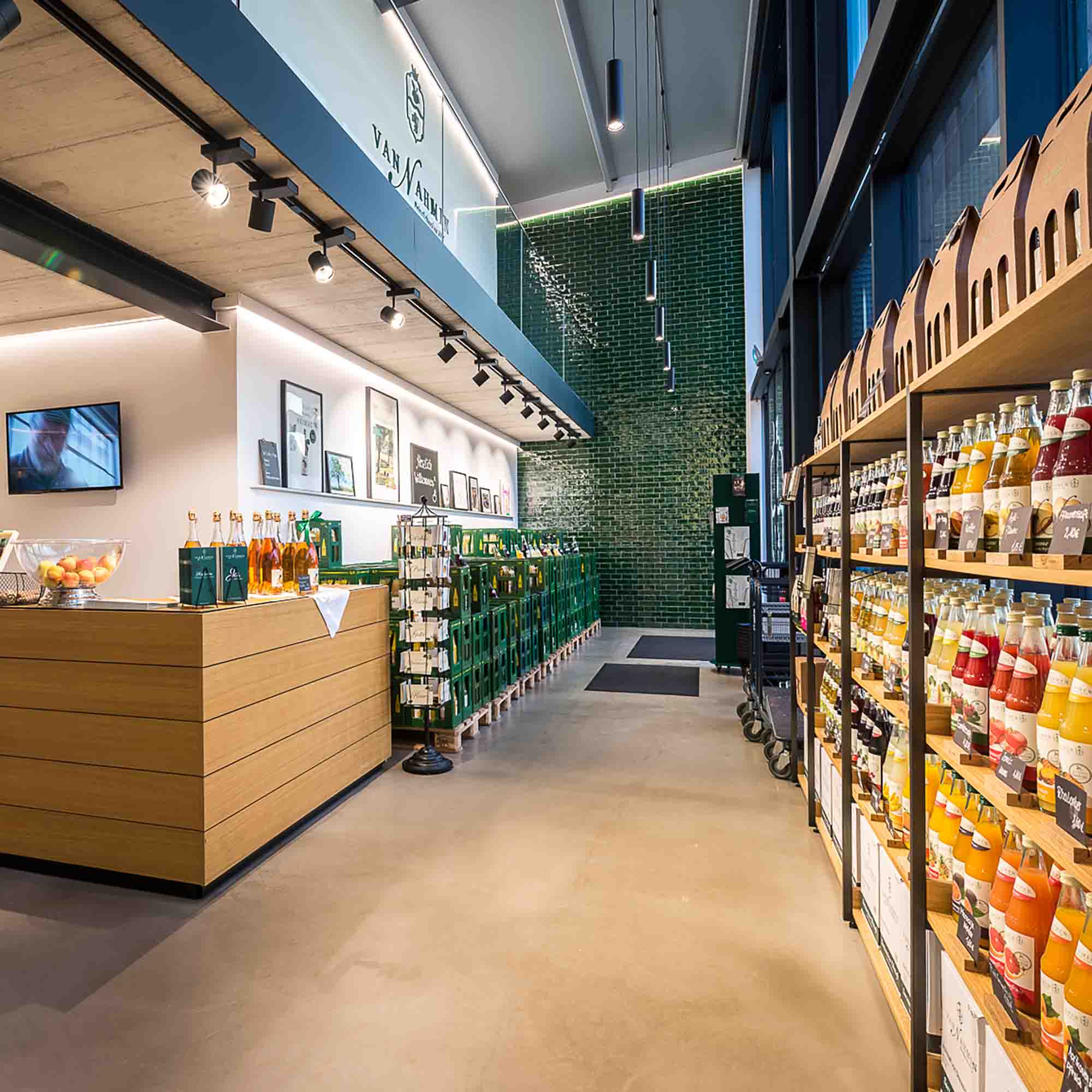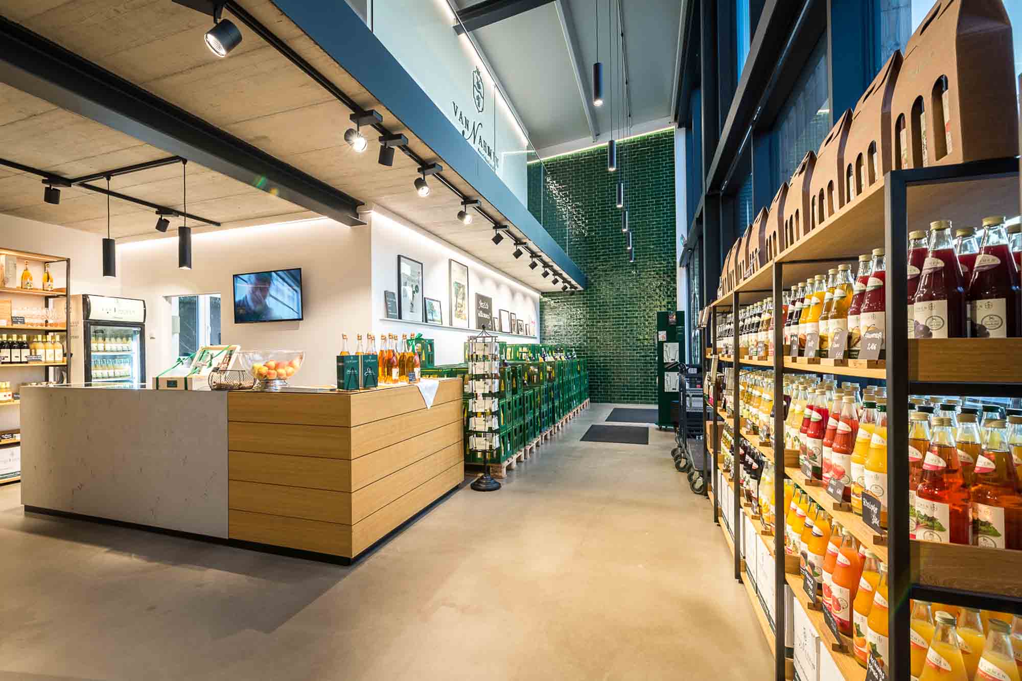 Seit September 2017 schmückt ein neuer Hofladen unseren Hof. Wir freuen uns, Sie von montags bis samstags in unseren schönen Räumlichkeiten willkommen heißen zu dürfen! Als architektonisches Gesamtensemble versinnbildlicht der Hofladen den Anspruch unseres Unternehmens, Tradition, Naturnähe und Modernität miteinander zu verbinden. Neben unserem kompletten Saftsortiment finden Sie hier eine liebevoll getroffene Auswahl Feinkost. Darüber hinaus regionale Spezialitäten von unseren „Feines vom Land“ Partnern und sicher immer eine tolle Geschenkidee für jeden Anlass. Auch für eine Beratung und Probeverkostung unserer Säfte stehen wir Ihnen hier jederzeit gern zur Verfügung.